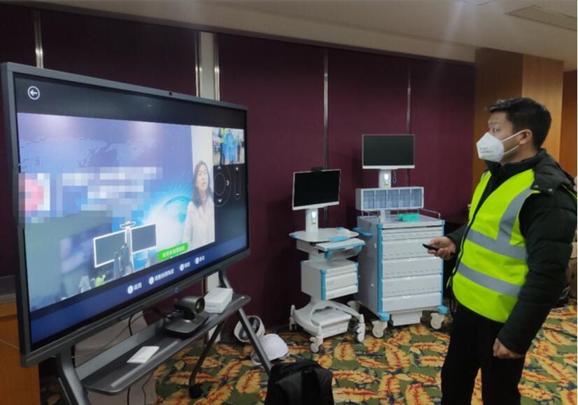 据悉,目前火神山医院也已采购配备有移动摄像头的医用推车,可进病房近距离拍摄病患情况。后期若有需要,推车拍摄的画面也可以引入远程会诊系统。