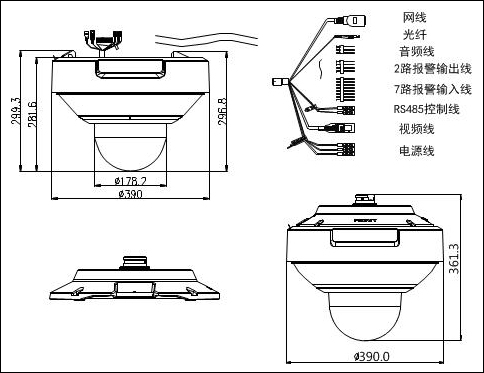 7路报警输入;2路报警输出;支持报警联动预置点/巡航扫描/SD卡录像/触发开关量输出/上传中心/上传FTP/邮件联动 |